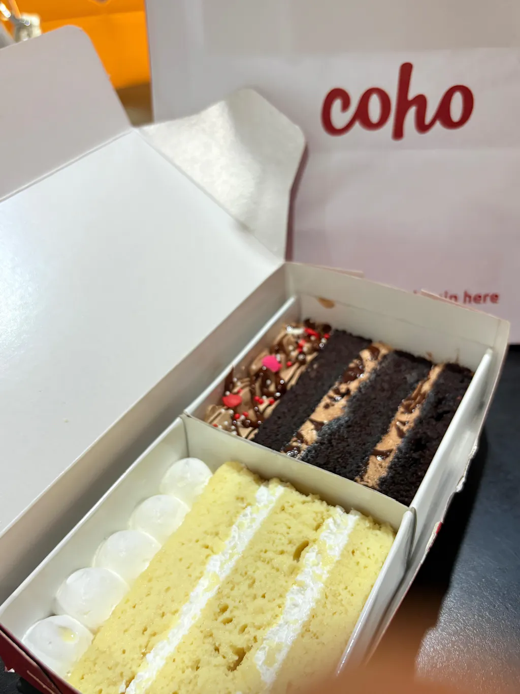Flour (Gluten), White sugar, Eggs, Milk, Whipping cream (Milk), White chocolate (Milk), Water, Cream (Milk), Ube paste, Vanilla flavoring, Baking powder, Super violet food-safe coloring, Salt