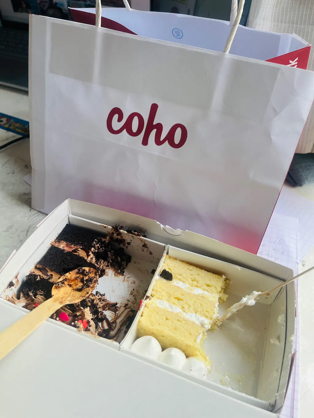 Flour, Cocoa, Sugar, Eggs, Water, Milk, Dark chocolate, Oil, Cream, Whipping cream, Vanilla, Baking soda, Baking powder, Salt, Vinegar.