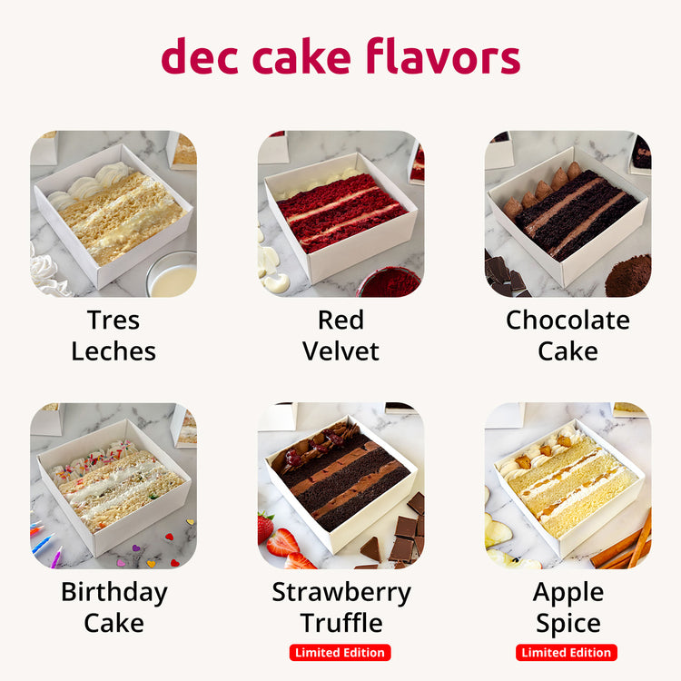 Flour, Cocoa, Sugar, Eggs, Water, Milk, Dark chocolate, Oil, Cream, Whipping cream, Vanilla, Baking soda, Baking powder, Salt, Vinegar.