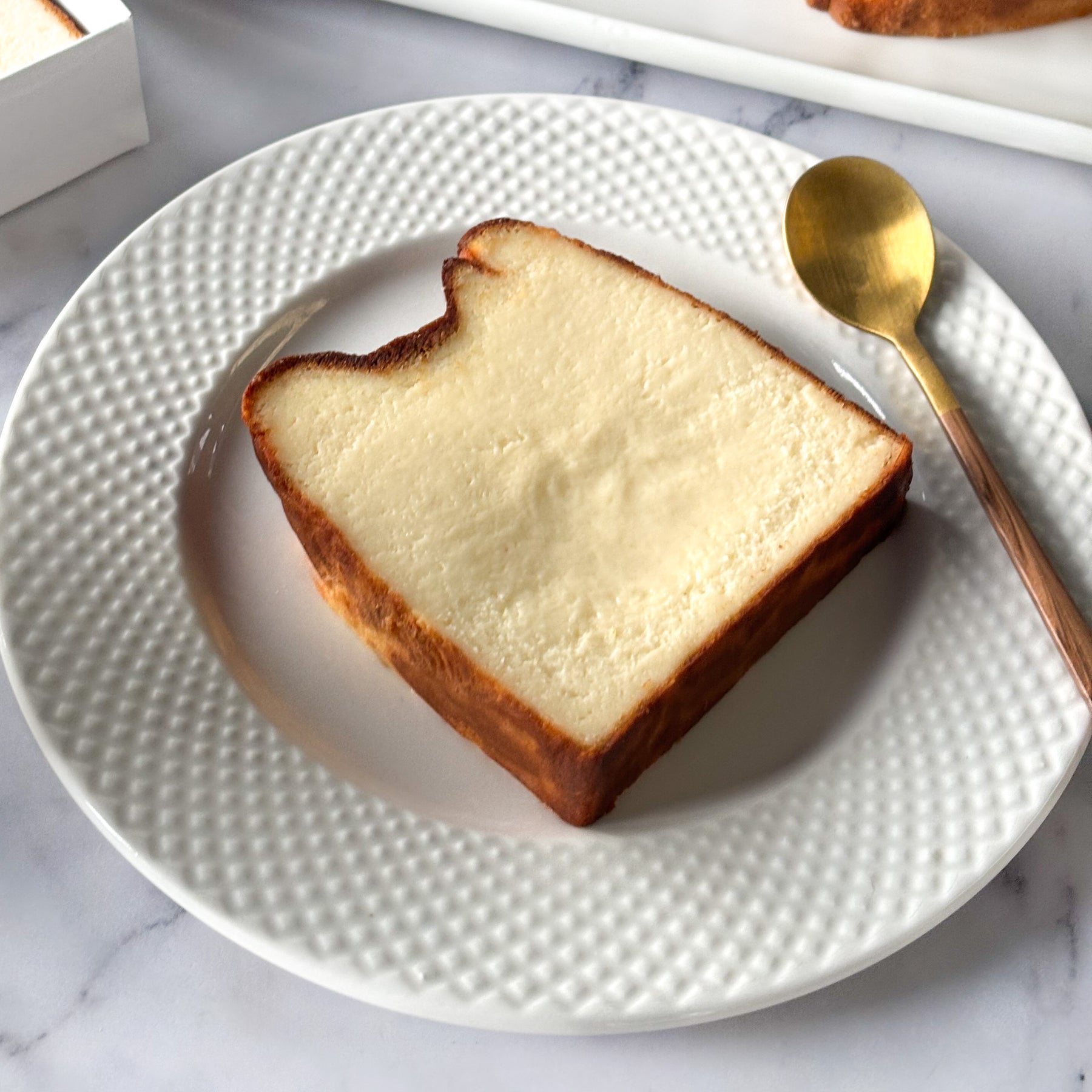 2 slices of Basque Cheesecake baked to perfection with a creamy, melt-in-your-mouth cheesecake center.