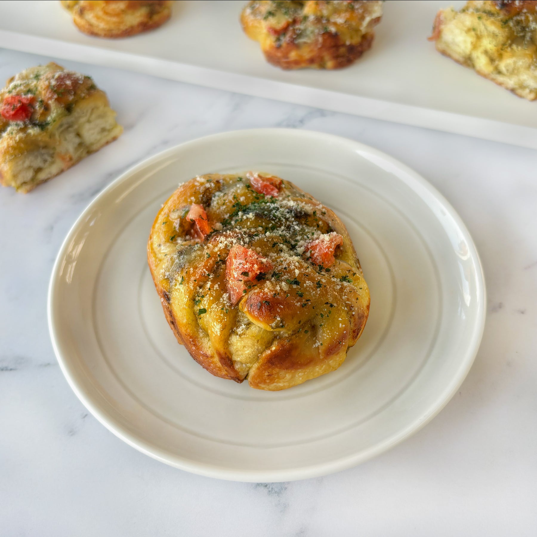 Flour (Gluten), Milk, Butter (Milk), Mozzarella cheese (Milk), Cherry tomatoes, Eggs, White sugar, Parmesan cheese (Milk), Olive oil, Oil, Basil leaves, Garlic, Walnuts (Nuts), Egg yolks, Cream (Milk), Yeast, Parsley, Salt